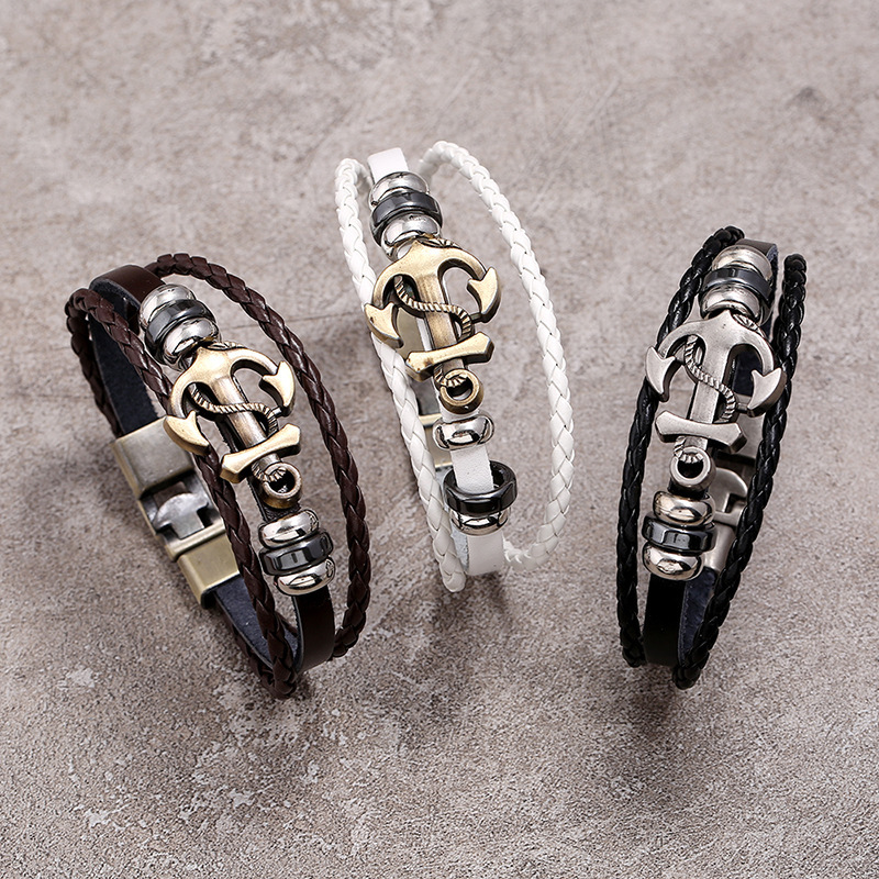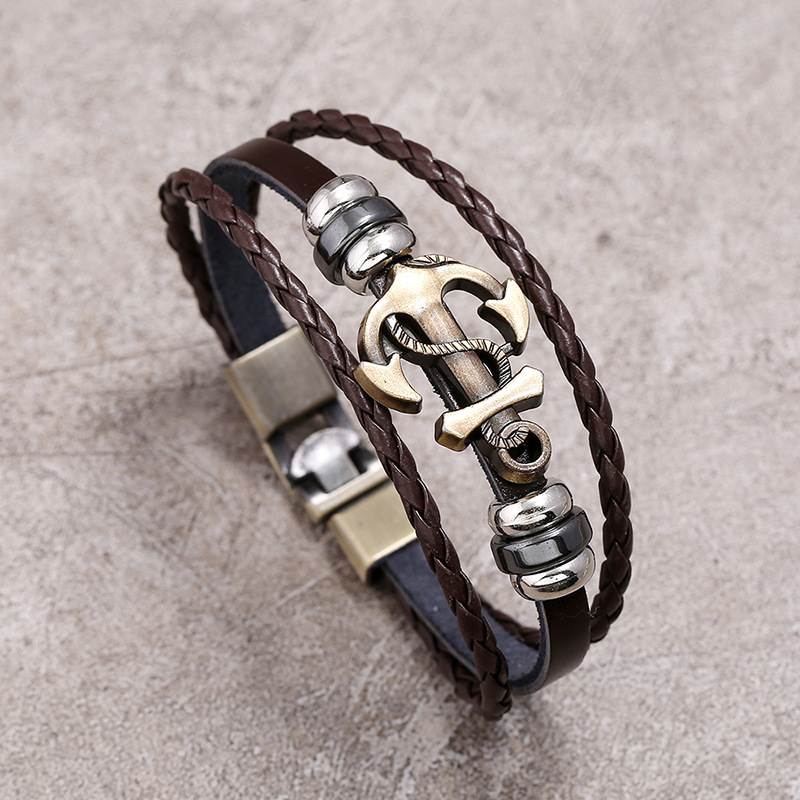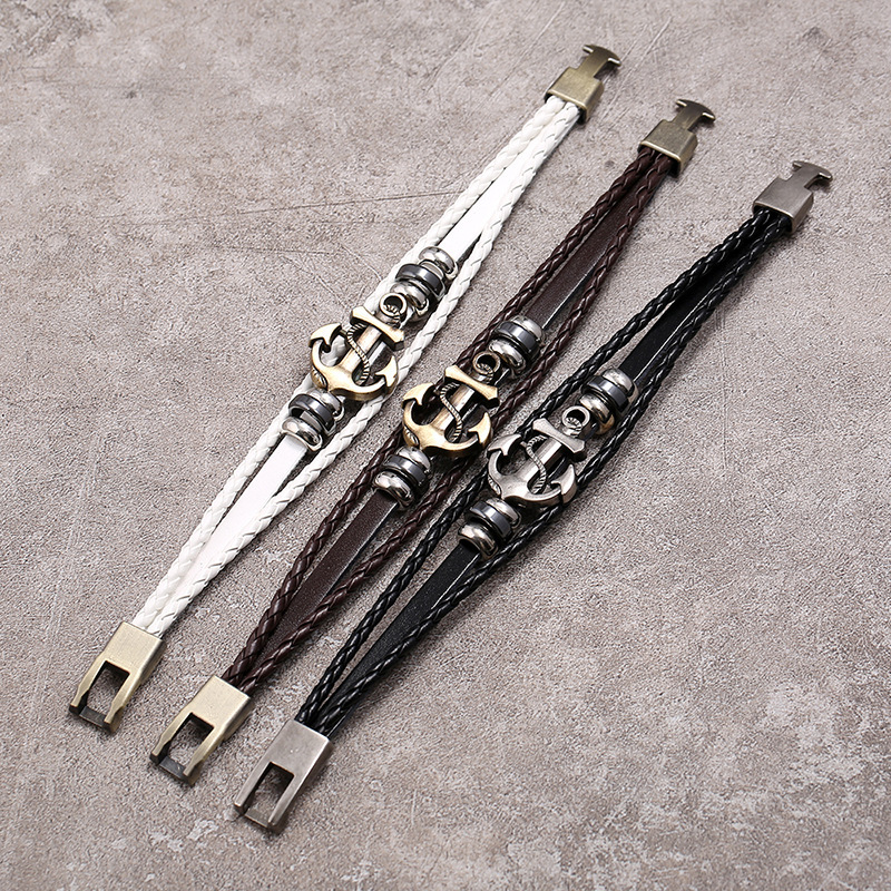 Vintage Anchor Leather Bracelet For Men | Stainless Steel Charm Bangle | Unisex Punk Wristband Gift